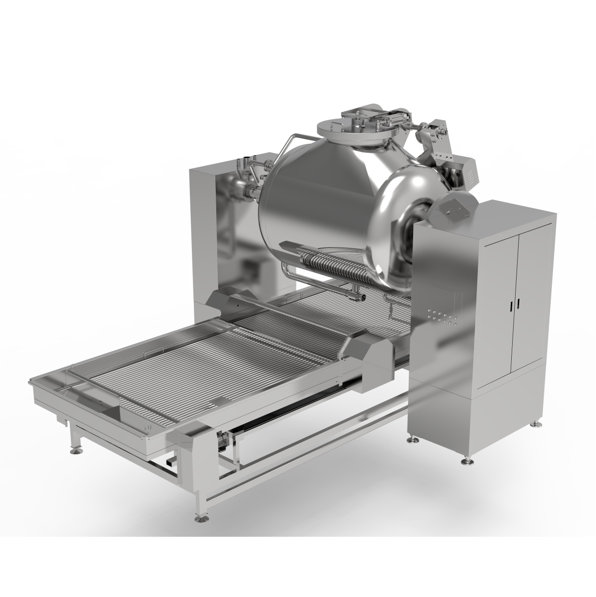 全⾃动旋拌式节能⻧制机主要⽤于禽类、⽜⾁等⾁制品⻧制,采⽤ 95-98 °C ⻧⽔对产品进⾏⻧制(根据⼯艺调整),⻧制机中设有⾃动恒温系统、⻧液循环系统、⻧液调配熬制系统、⾃动进出料系统;整机⾃动化程度⾼,减轻劳动强度,提⾼⽣产效率,与传统⻧制流⽔线对⽐,可减少⼤量蒸汽、⻧液、⾹⾟料等⽣产损耗,并可实现单机⼩产量使 ⽤、多机连续式⼤产量⽣产,机动性强,适⽤于⼤中⼩型企业。