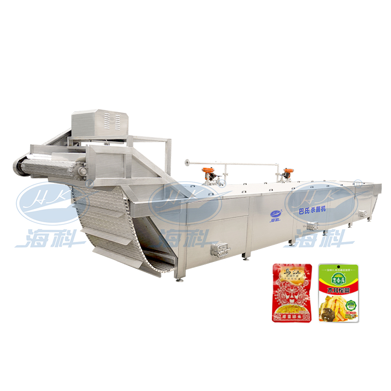 在食品、饮料、制药等行业中,要求对一些包装完毕的产品进行水浴式灭菌,被包装好的产品放在可调速的不锈钢网带上,在传递带的作用下按顺序进入灭菌箱体内,经由“高温水为介质”杀菌后,再由传送带带入箱体均匀冷却,从而达到产品杀菌要求。杀菌、冷却机连续运转,已灭菌的包装产品被源源不断送入下一生产线。